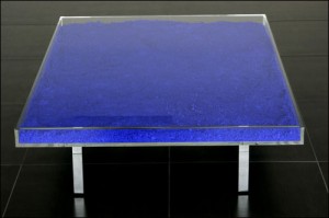 Artist Yves Klein patented his own color, International Klein Blue (IKB), in 1960. The next year, he designed a low, simple form table filled with the pigment.